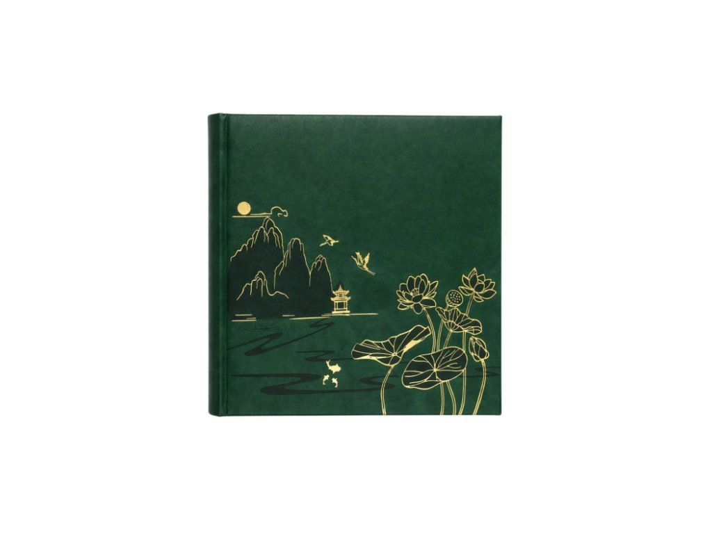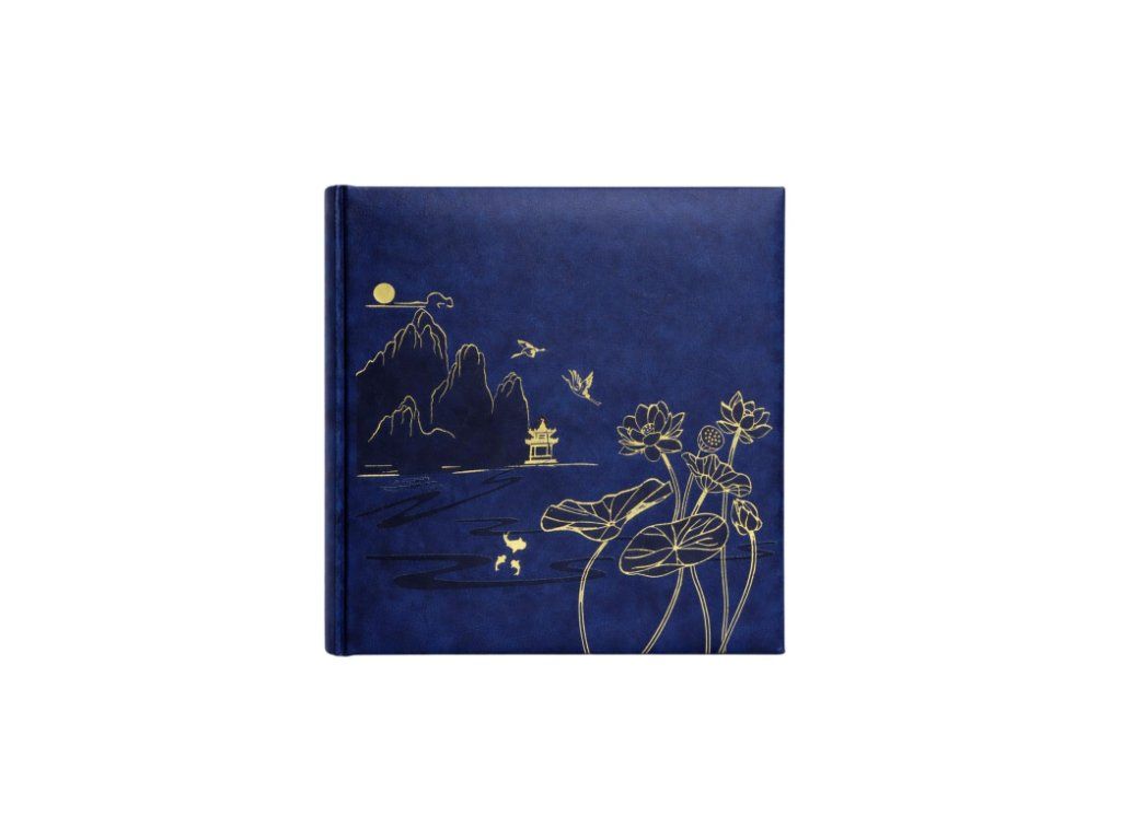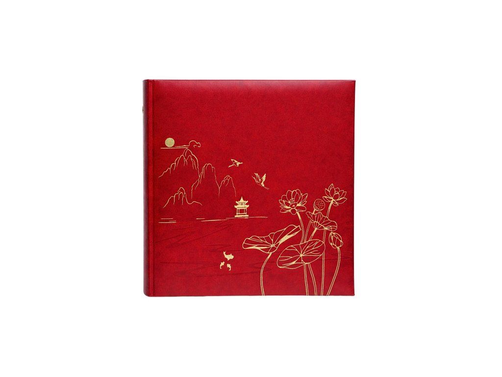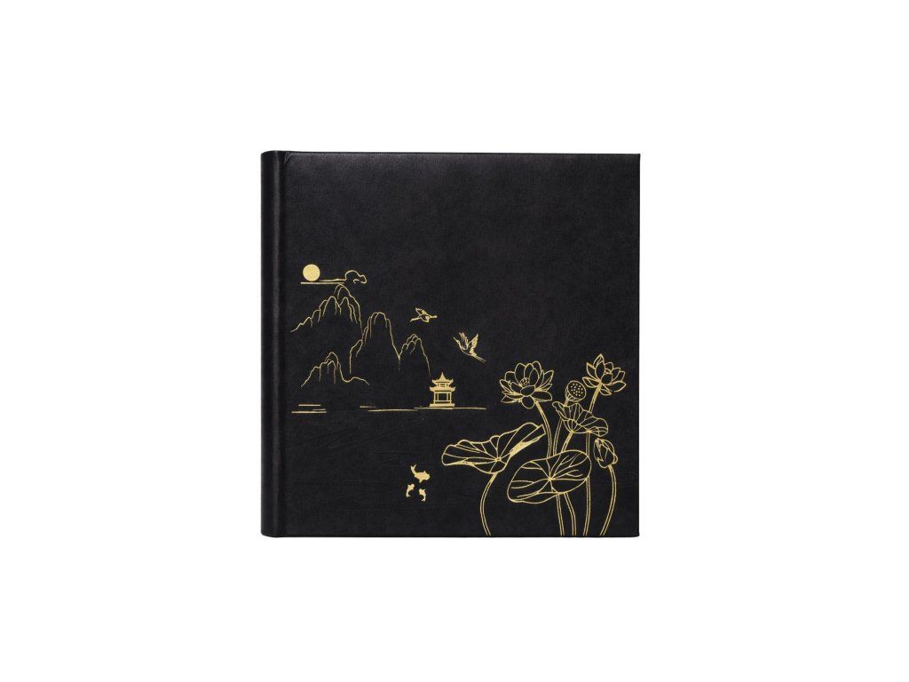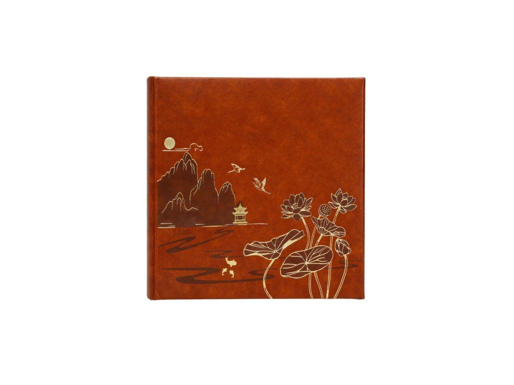 Predstavujeme zasúvací fotoalbum, ktorý spája praktickosť s jedinečným umeleckým dizajnom. Obálka z hladkej ekokože v piatich farebných prevedeniach vytvára dokonalé pozadie pre precízne zlaté zdobenie. Línie inšpirované umením Ďalekého východu zobrazujú malebnú scenériu s pagodou, horami, letiacimi žeriavmi a kvitnúcimi lotosmi. Tento detail dodáva albumu ušľachtilý, orientálny charakter.